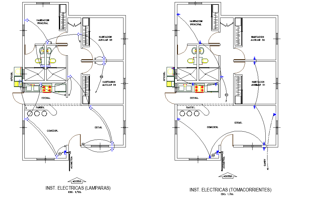 Electrical house plan autocad file, cut out detail, furniture detail in door and window detail, electrical points detail, etc.
