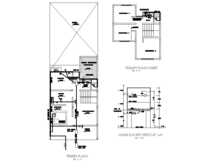Water pipe line house plan layout file, cut out detail, dimension detail, naming detail, hatching detail, scale 1:20 detail, stair detail, etc.