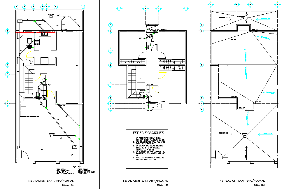 Water pipe line house plan layout file, centre line plan detail, dimension detail, naming detail, PVC pipe detail, specification detail, stair detail, furniture detail in door , window and cub board detail, etc.