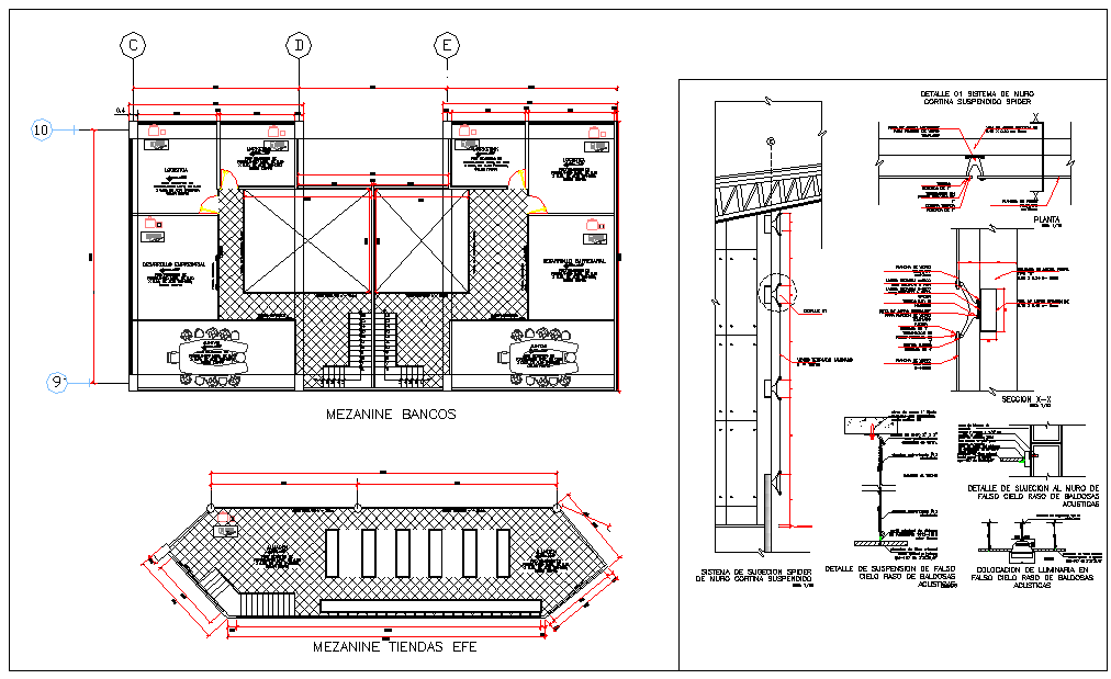 Mezzanine design small Bank Detail. Business development, floor coated with matte porcelain tile, 0.60 x 0.6, marketing, together, tempered glass e = 10mm, warehouse, faculty of civil engineering and architecture,