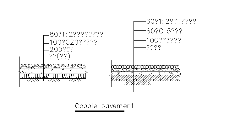 Cabble pavment details, pavement details and construction is shown with dimensions detail