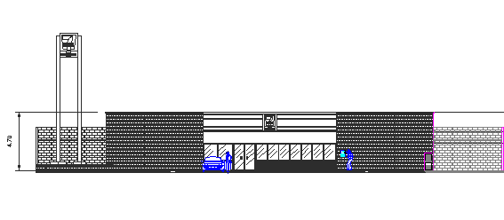 Main elevation view details of mini super market dwg file