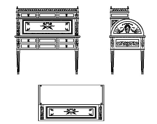 Ancient times furniture details, here there is 2d and front elevation details of ancient style table and chair