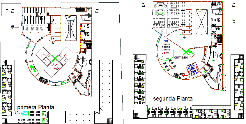 First and second floor layout plan details of shopping mall that includes a detailed view of main entry and exit gate, car parking view, basement floor, indoor staircase, shops and showrooms, corporate offices, salon, academic shops, departmental stores, food stores and much more of shopping mall floor plan.