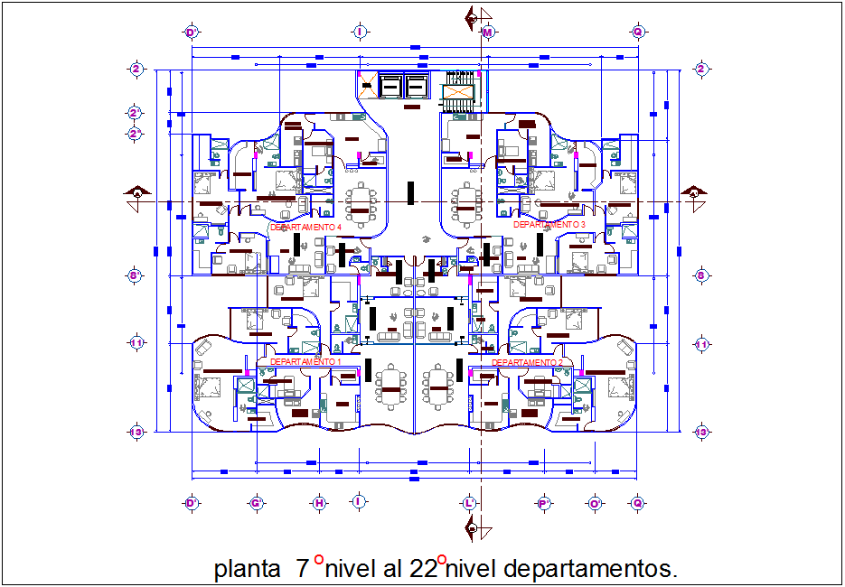 Seven to twenty two floor view with department view with office and residence area view dwg file in