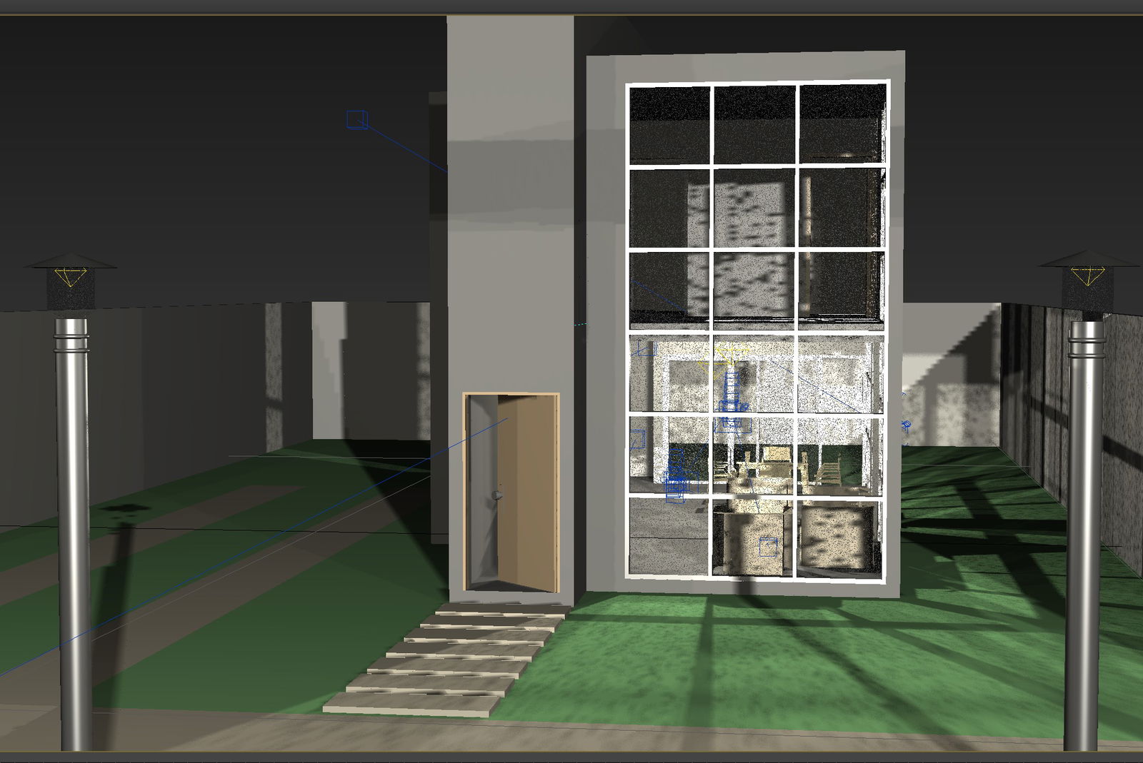 3D max File of banglow with door detail, glass full window , Landscaping outside ,strret light etc.