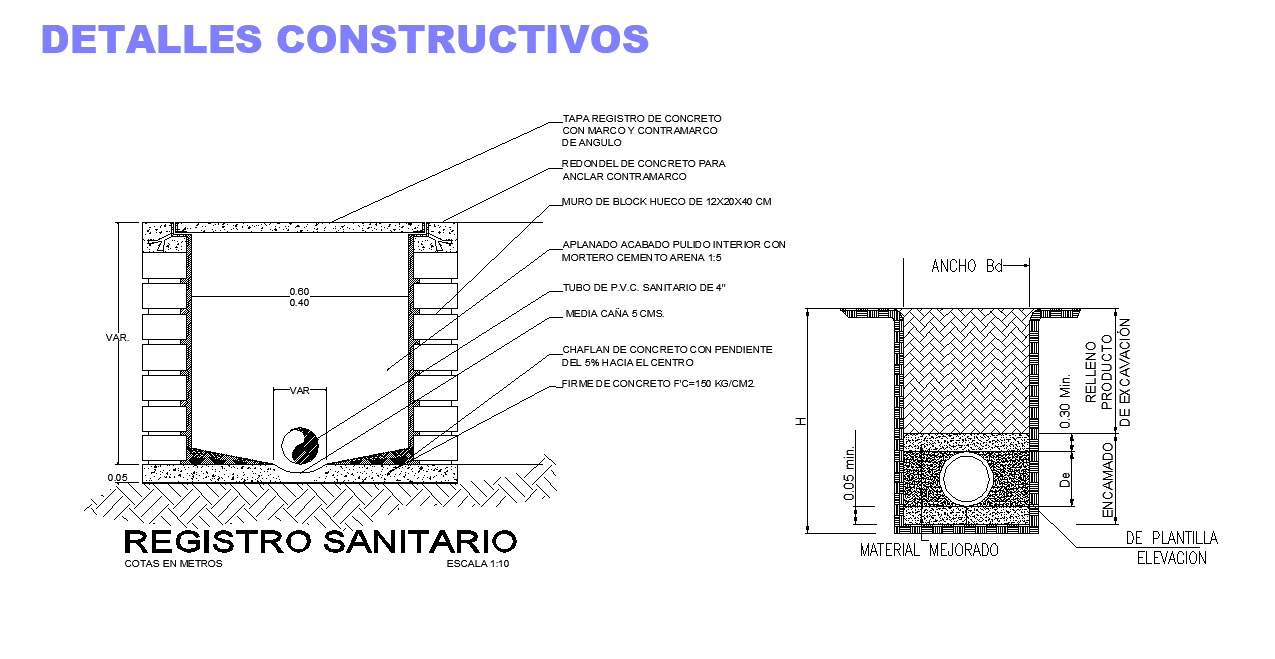 Main hole plan and section autocad file, soil water detail, dimension detail, naming detail, hatching detail, scale 1:10 detail, etc.