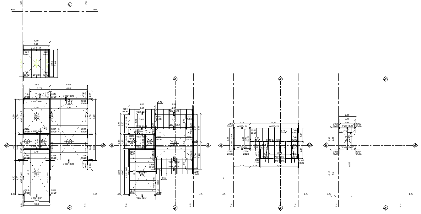 Ground floor and roof house plan layout file, centre line plan detail, dimension detail, beam section plan detail, cut out detail, section line detail, etc.