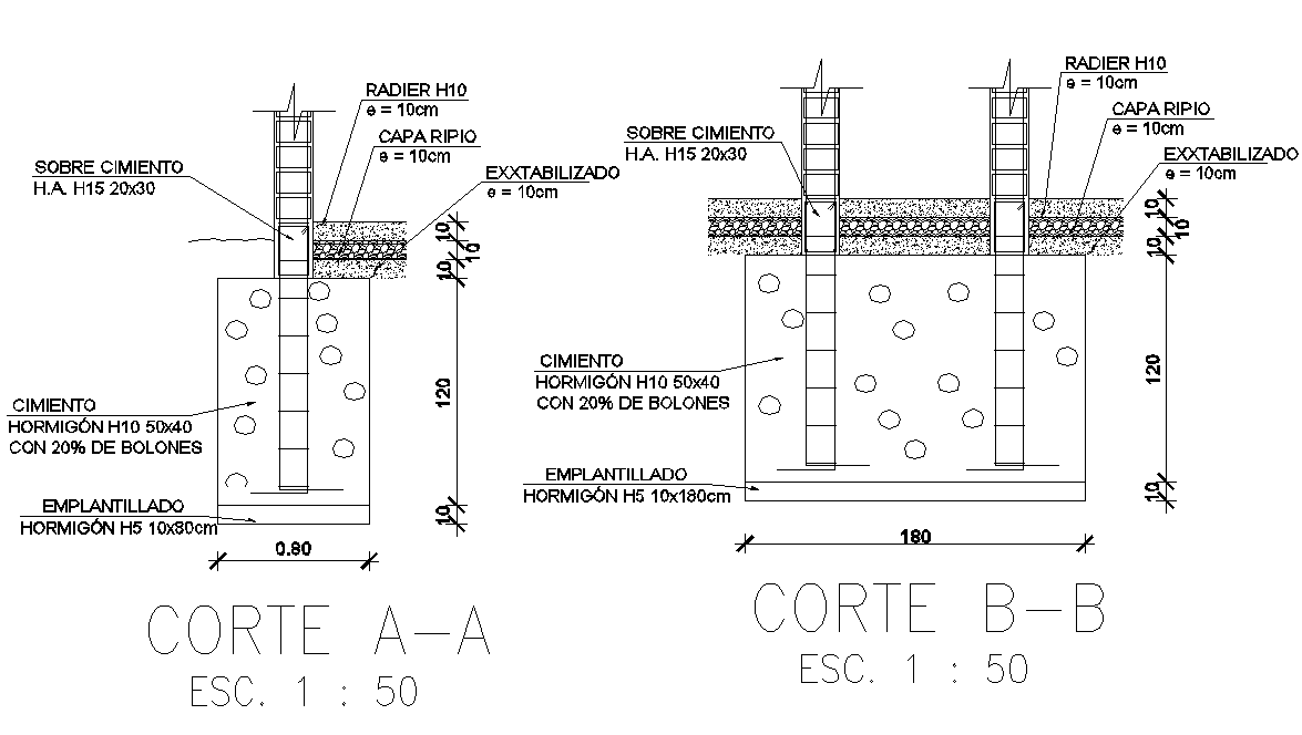 Foundation section autocad file, reinforcement detail, dimension detail, naming detail, bolt nut detail, scale 1:50 detail, etc.