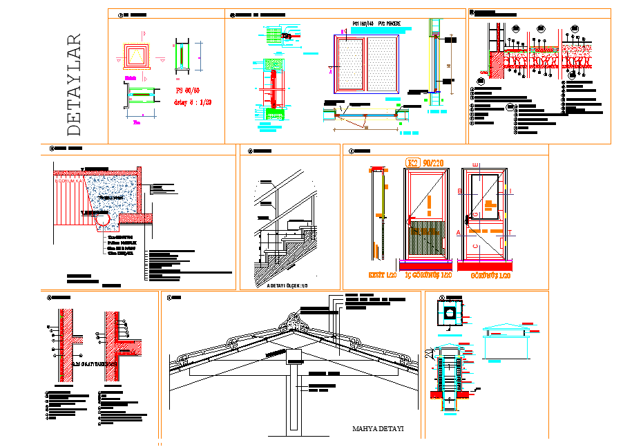 King post and stair section plan layout file, centre line plan detail, dimension detail, reinforcement detail, riser and trade detail, door and window elevation detail, section line detail, column section detail, etc.