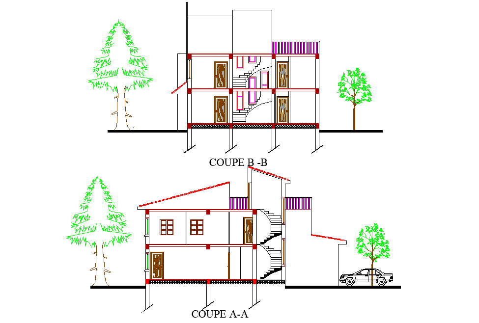 Section Villa plan layout file, section A-A’ detail, section B-B’ detail, landscaping detail in tree and plant detail, stair detail, car parking detail, furniture detail in door and window detail, etc.
