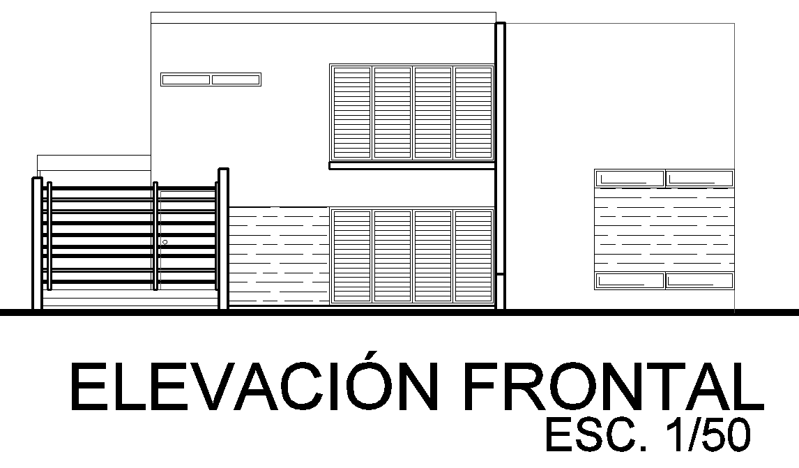 Front elevation house plan layout file, house gate detail, furniture detail in door and window detail, hatching detail, etc.