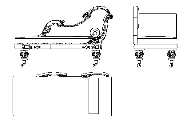 Carved long lounge chair sectional detail,here there is 2d front elevation details , sectional details in auto cad format