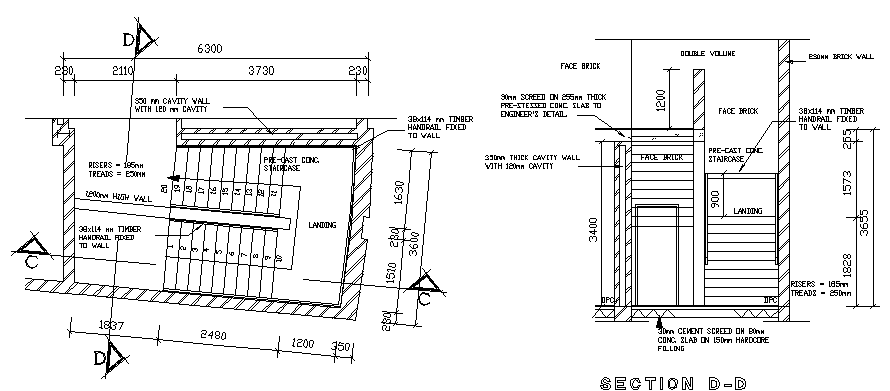 Staircase sectional details,Depth sectional detailing, top view of a layout is shown , construction detail in auto cad format