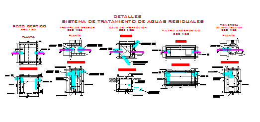 Waste water treatment system detail drawing of single family house design drawing