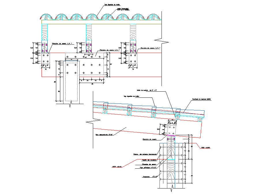 Roof in wall section plan layout file, dimension detail, naming detail, reinforcement detail, bolt nut detail, etc.