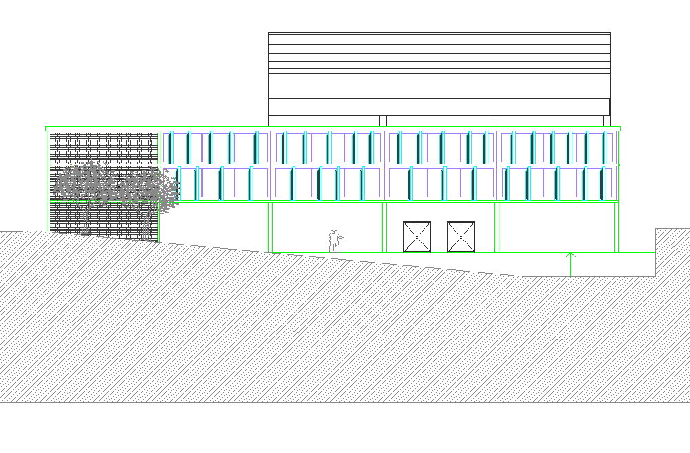 Elevation community center autocad file, landscaping detail in tree and plant detail, furniture detail in door and window detail, hatching detail, etc.