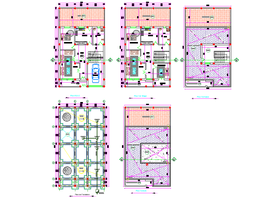 Foundation plan to roof house plan dwg file