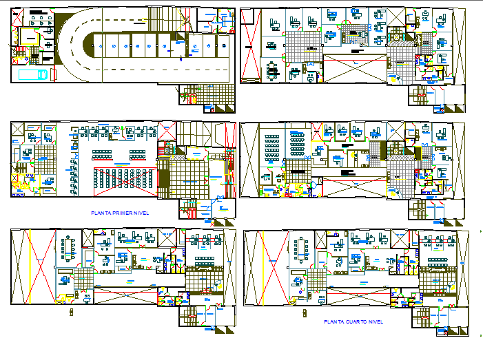 Floor plan layout details of multi-flooring bank head office building dwg file
