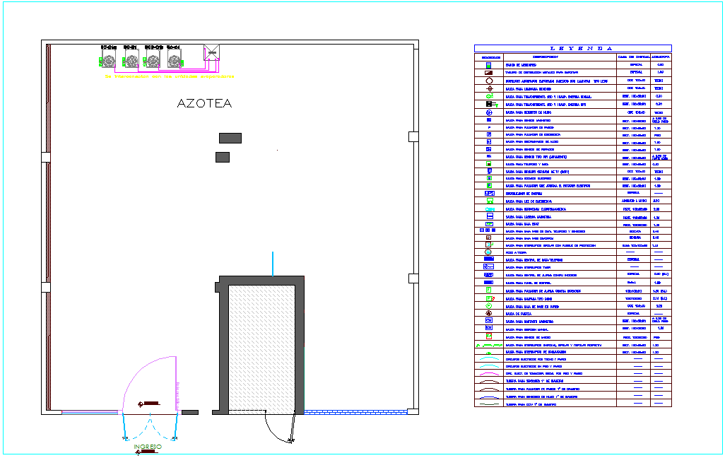 Evaporating line electrical connection view of roof top plan for IIEE office dwg file in plan with view pf roof area with roof and wall view and view of entry way,wall support and texture view with symbolic
