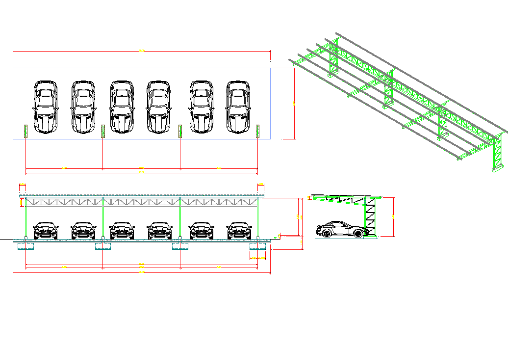 Car park plan. car parking top view plan with front and side view plan are shown in detail.