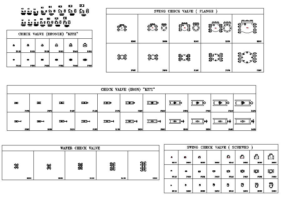 Check valve plan. Plan with detailing of swing check valve detail, wafer check value detail, etc.,