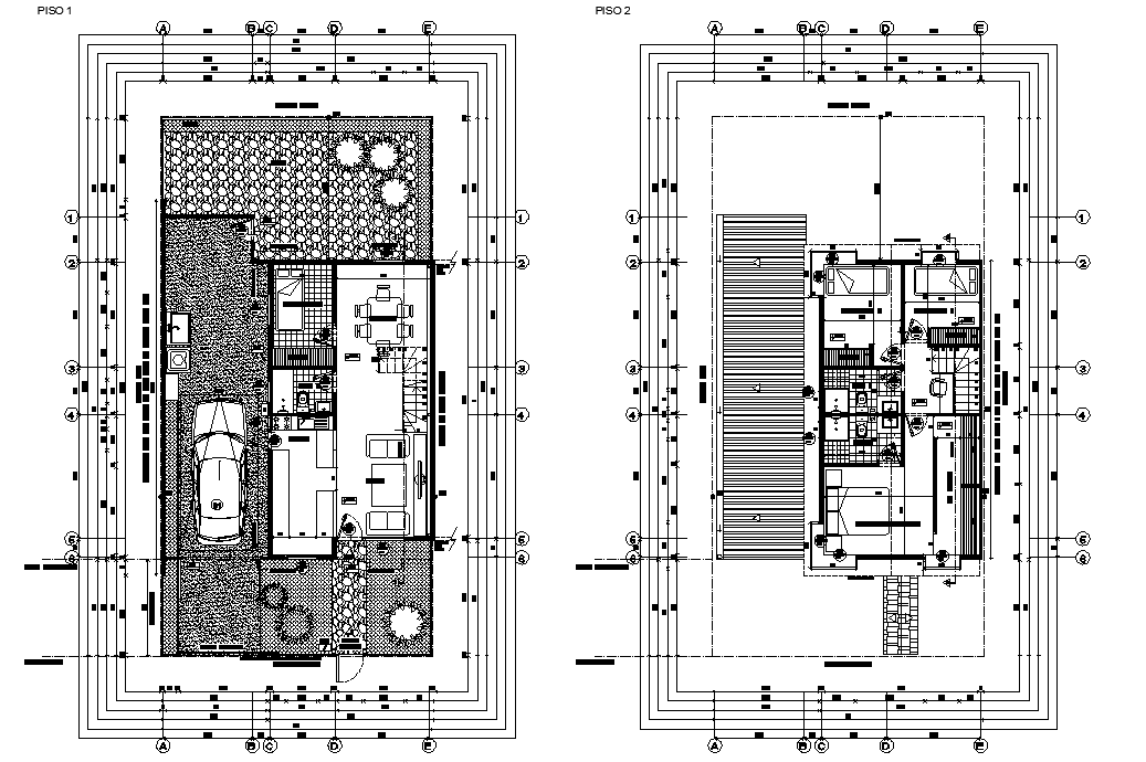 Single family house working plan autocad file, centre line plan detail, dimension detail, naming detail, car parking detail, landscaping detail in tree and plant detail, stair detail, furniture detail in door, window, chair, table, bed, sofa and cub board detail, stone detail, etc.