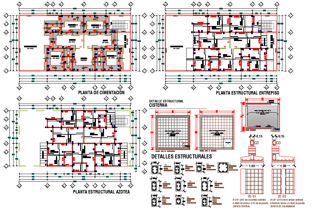 Foundation plan and section autocad file, reinforcement detail, bolt nut detail, column section plan detail, centre line plan detail, dimension detail, naming detail, stair detail, spacing detail, etc.