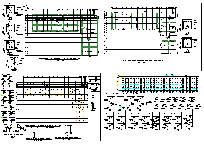 Construction with structure details of administrative building that includes a detailed view of foundation plan of footings, foundation plan of column and beam, floor construction view, structure view and much more of building project.