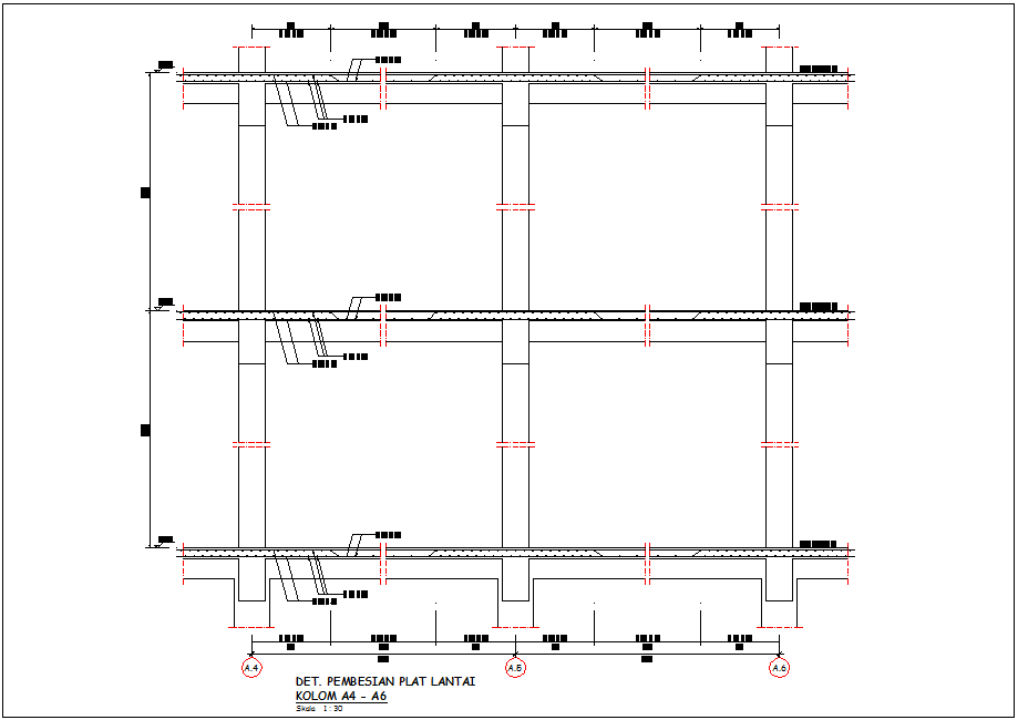 Refrigeration of floor plate column A-4 and A-6 for government building dwg file in plan with view of area distribution with wall and wall support view and view of column length,width,mounting position