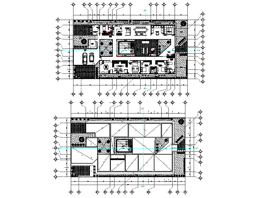 Living place working plan layout file, centre line plan detail, dimension detail, naming detail, section line plan detail, car parking detail, furniture detail in door, window, chair, table, bed, sofa and cub board detail, cut out detail, landscaping detail in tree and plant detail, etc.