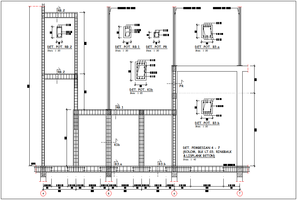 Column and ring black 4-7 elevation with detail view for corporate building dwg file in elevation with view of wall and wall support view and view of wall support view with column view with column foundation and necessary detail view of 4-7 for office area in elevation.