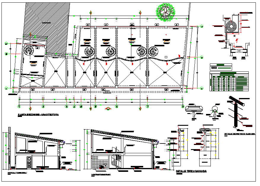 government office building detail in this project file, polished cement floor , snail type staircase carp. metalica ø 1.60 m., beam projection, proy. zinc channel, protective column of pipe of pluvial drain ø 4 ", cross-cutting " etc detail.