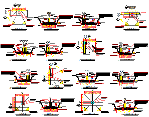 Shopping mall constructive details with column and beam that includes a detailed view of column construction, beam construction, dimensions, measures, materials, cut sectional view and much more of construction details.