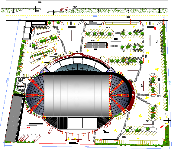 Hyper market landscaping with 3d layout of market dwg file