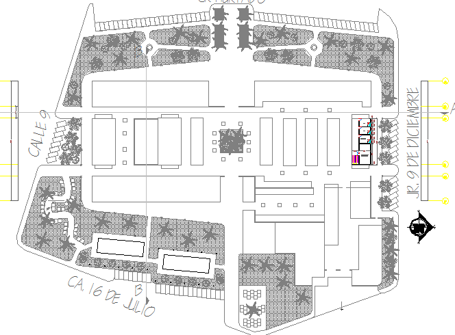 Landscaping view with general layout plan of shopping mall dwg file.