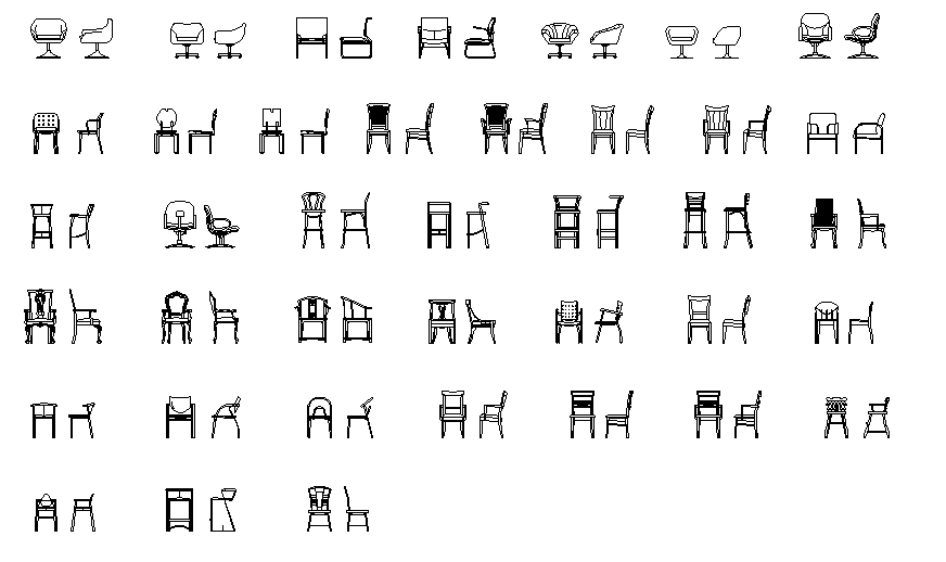 Chair elevation dwg file. Front view and side view elevation of chairs with different size, height, style, design etc.