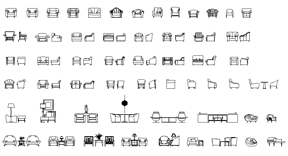 Armchairs side and front dwg file view. Wooden or s.s chair with different design styles with good comfort.