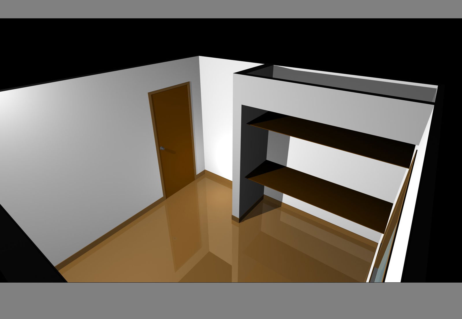 Simple bed-room plan. 3D plan of a room with door detailing, floor detailing, rack detailing, etc.,