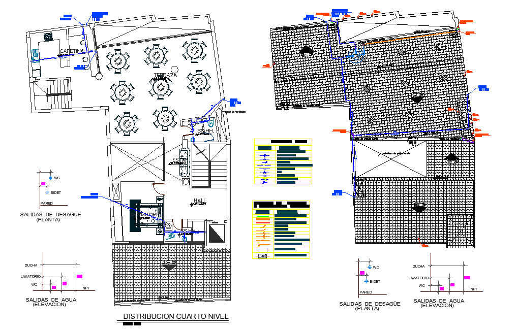 Restaurant planning detail dwg file, dimension detail, naming detail, furniture detail in table, chair, door and window detail, stair detail, table specification detail, hatching detail, leveling detail, etc.
