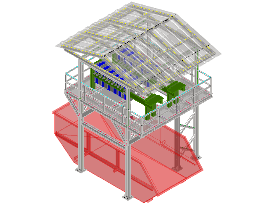 Sludge hopper 3 D plan dwg file, roof plan detail, column section plan detail, steel framing detail, etc.