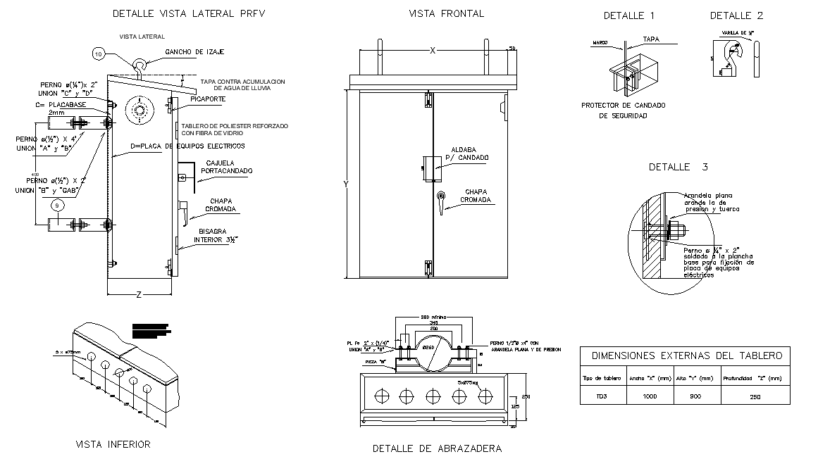 Detail side view PRFV plan layout file, dimension detail, naming detail, table specification detail, section detail, etc.