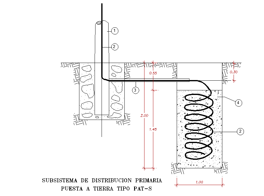 Subsystem of primary distribution grounded type autocad file, circuit detail, concrete mortar detail, stone detail, numbering detail, etc.