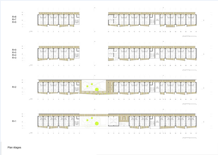 Four floors layout plan details of multi-level shopping mall dwg file.