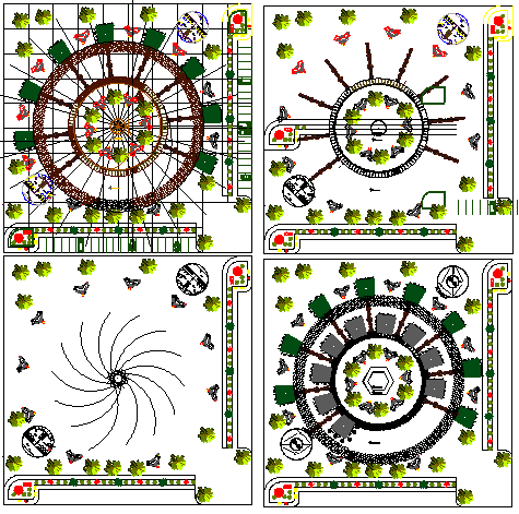 Landscaping details of single story showroom that includes a detailed view of landscaping view, tree view, green area, plants view, green area, car parking view, indoor roads and much more of showroom project.
