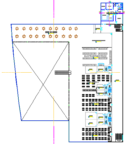 First floor layout plan details of shopping market that includes a detailed view of main entry and exit gate, shops and showrooms, theater, departmental stores, food stores, fun zone, indoor hall, passages and much more of market project.