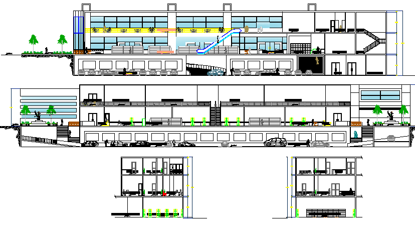 Super market elevation and sectional details dwg file
