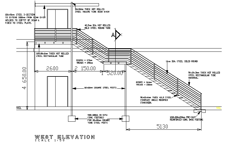Side staircase elevation details,big scale architectural project, complete furniture detailing is shownm, vast project design