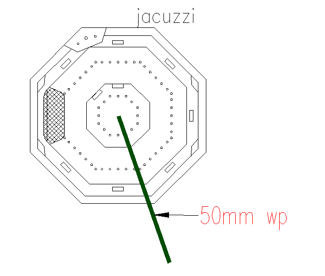 Jacuzzi and whirlpool baths. Drawings in plan and side detail with dimension.