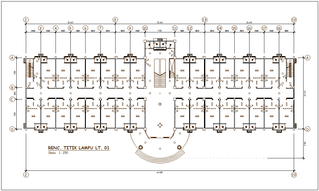 Lamp point of office area plan with electrical view dwg file in plan with view of area distribution of office distribution with wall and wall support view and view of column symbolic view with its point position view in office plan view with necessary detail and dimension in plan with electrical view.